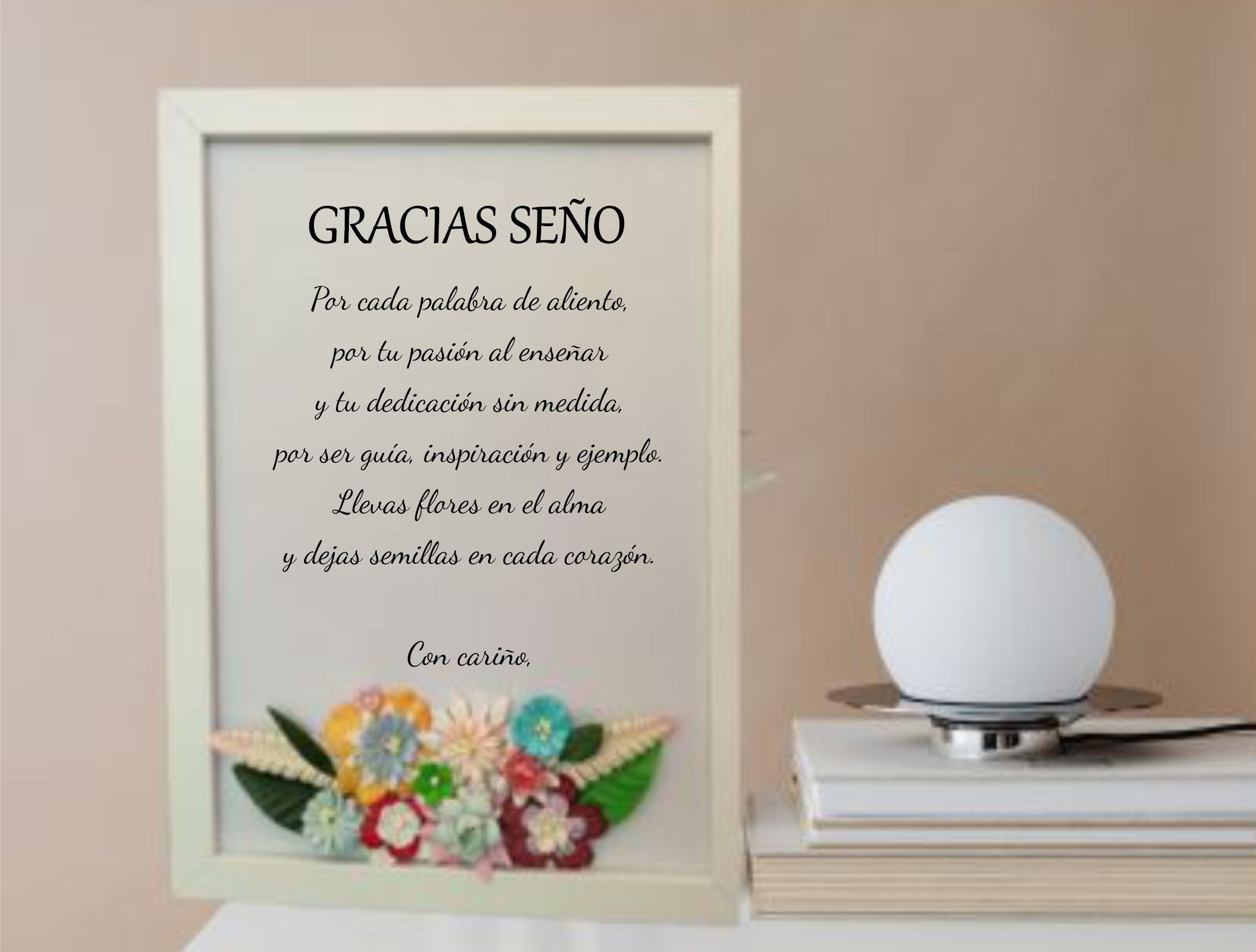 Ese familiar o amigo que ha dejado huella, merece saber lo importante que ha sido. Nuestro cuadro de agradecimiento, con flores artesanales y mensaje personalizado, es una forma preciosa de decir: “Gracias por tanto.”